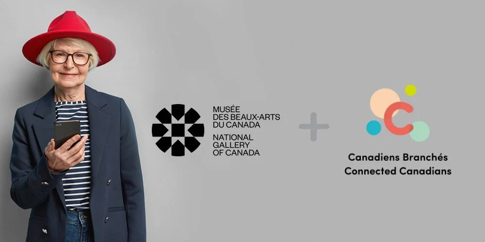 Canadiens Branchés a établi un partenariat avec le Musée des beaux-arts du Canada dans le cadre d'une nouvelle initiative qui met les personnes aînées en contact avec un soutien numérique individuel pour qu'elles se familiarisent avec la navigation sur beaux-arts.ca et d'autres plateformes du MBAC. Ensemble, nous avons développé un programme personnalisé qui aide les personnes âgées à rester connectées grâce à une programmation artistique virtuelle. Nous croyons que chacun devrait être habilité à utiliser la technologie et avoir accès à la découverte de l'art et des offres du MBAC en ligne.